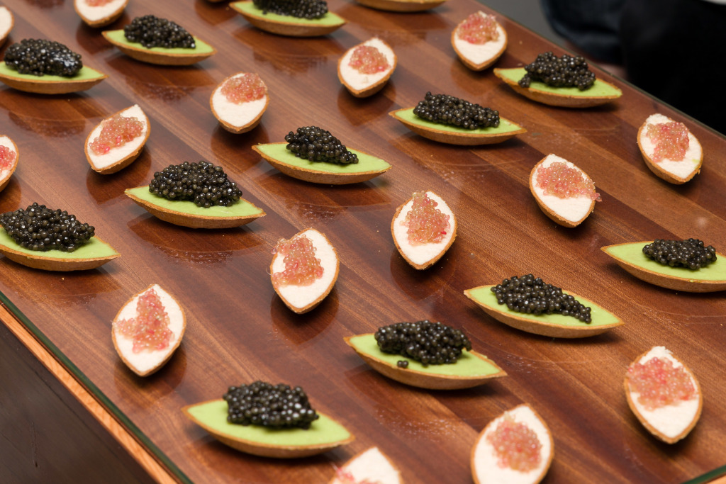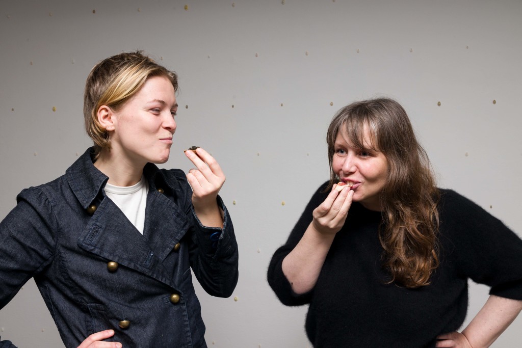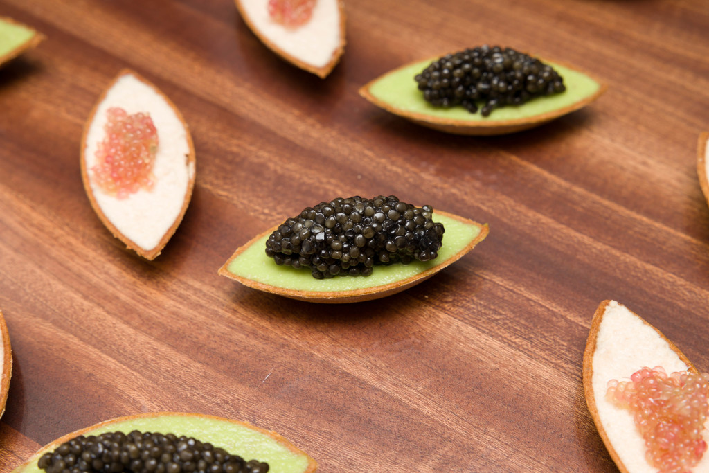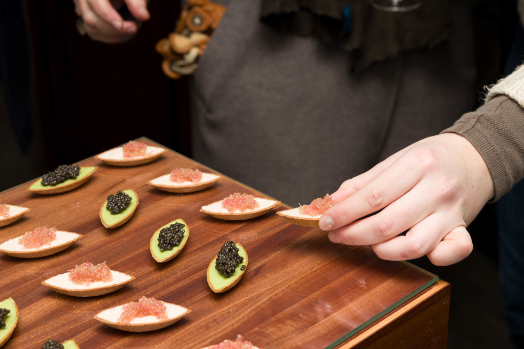The edible work, Relatively consists of appetizers with two types of canned fish eggs – one with cod roe, the other with caviar – representing each end of a value scale, while essentially being the same product.