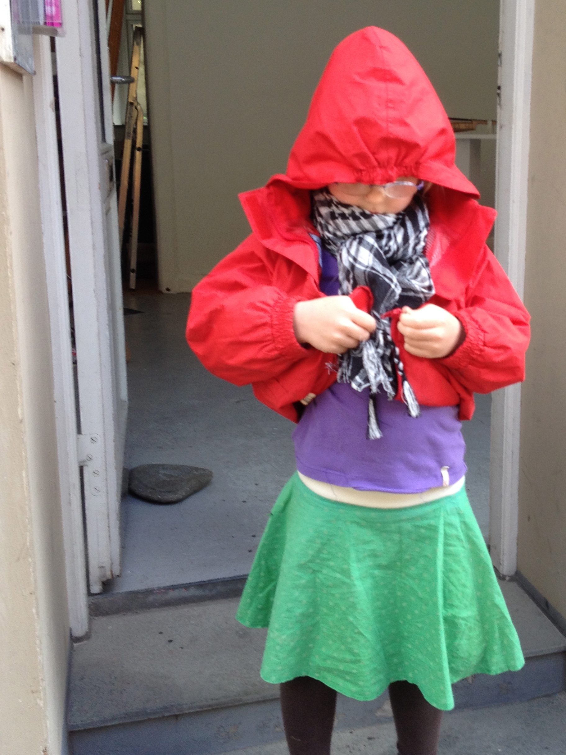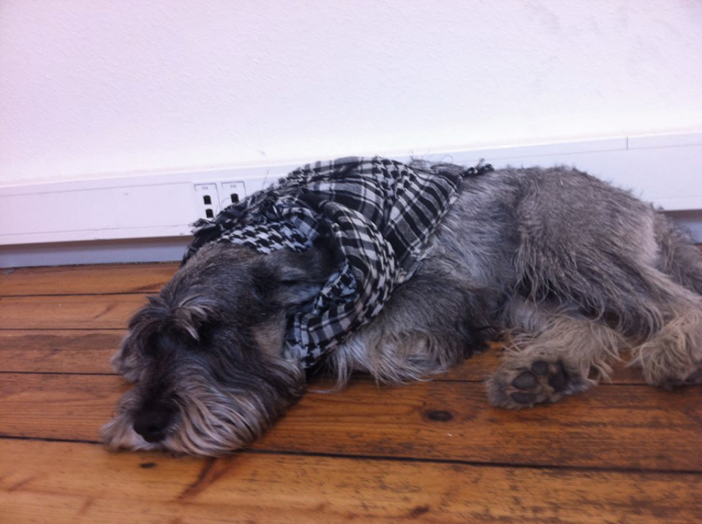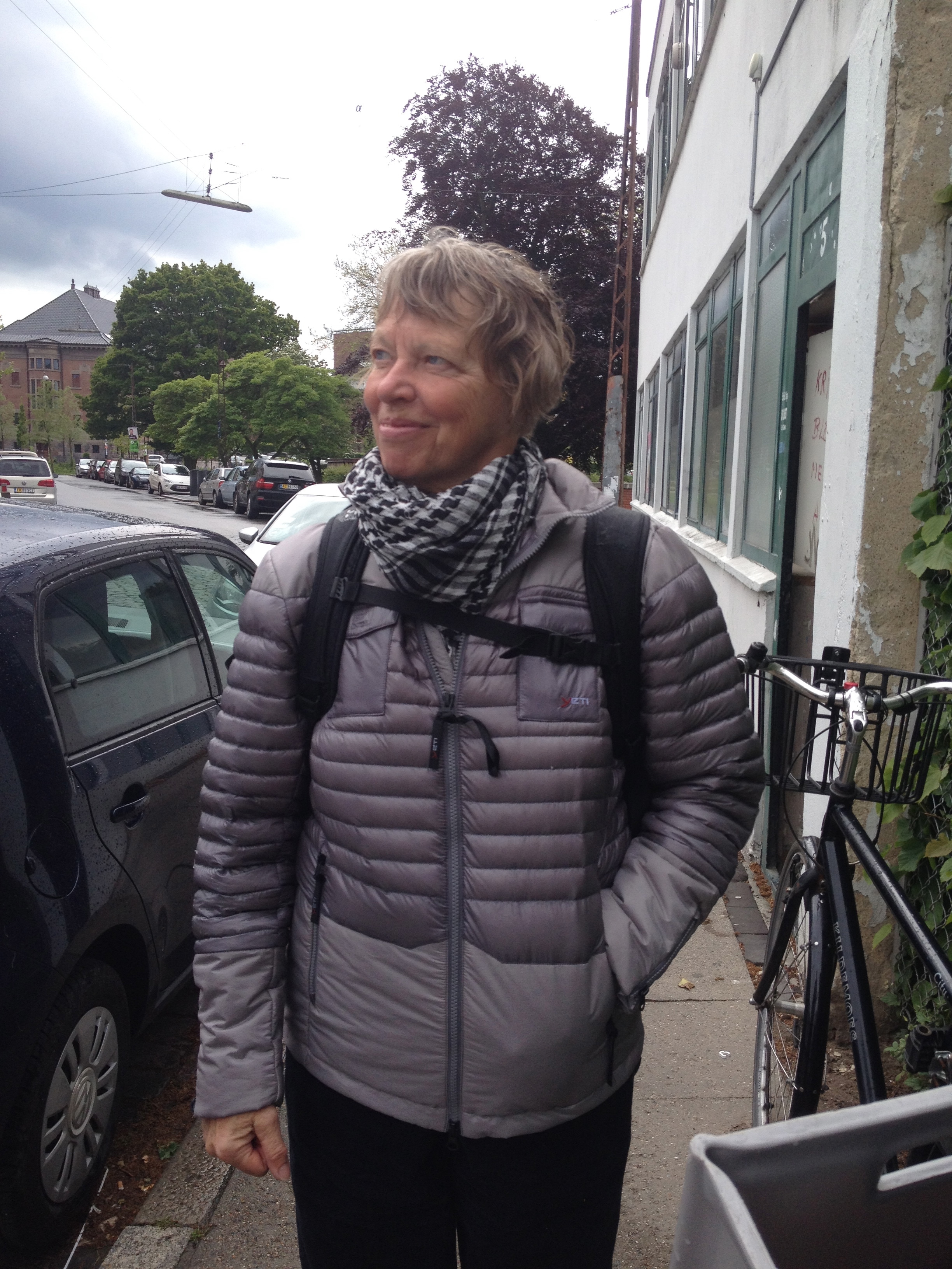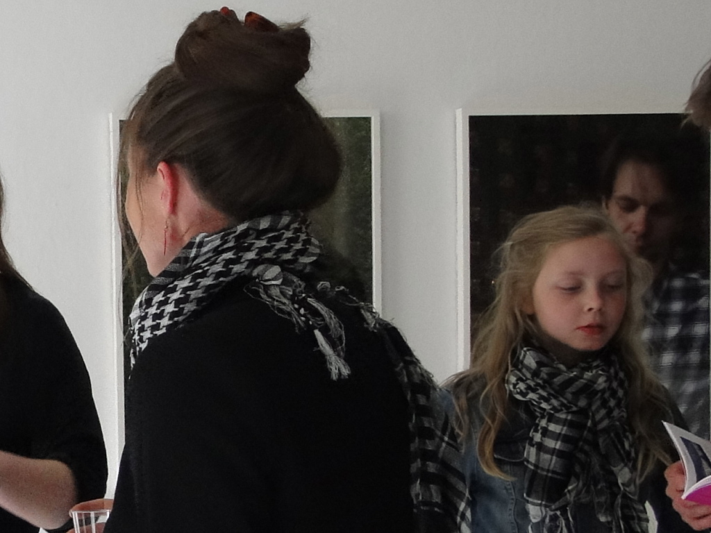 a variation based on the original Arabic keffiyeh. They constitute Line Sandvad Mengers' artwork, SO CLOSE, which is a part of her exhibition, with the same title, in rum46. The 100 individuals have been asked if they will wear the scarf during the Art Weekend; it being up to them how long they will wear it and where. It is a form of collective action, a subtle infiltration into the urban scene in Aarhus. During the weekend a new network of connections arises between the scarf-wearing citizens as this black and white checkered community spreads out.