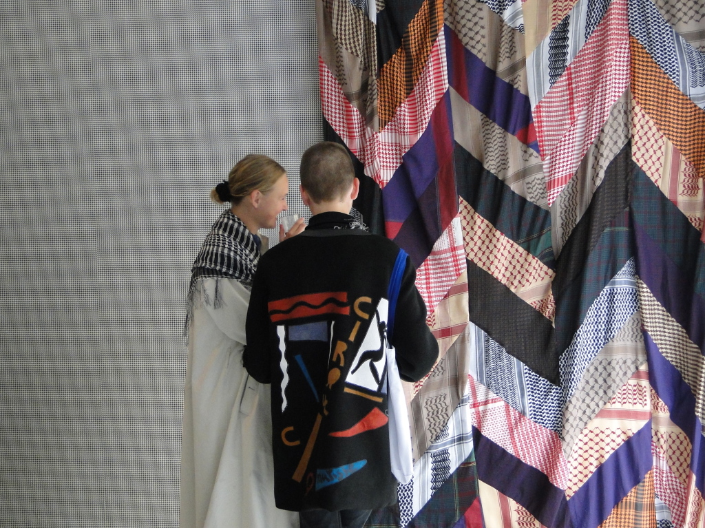 In the street the sudden prevalence of the black and white check may cause wonder, whilst the public's senses may be sharpened after visiting the exhibition, or after reading this introduction to the work. The scarf in this way achieves a new or revitalised meaning.