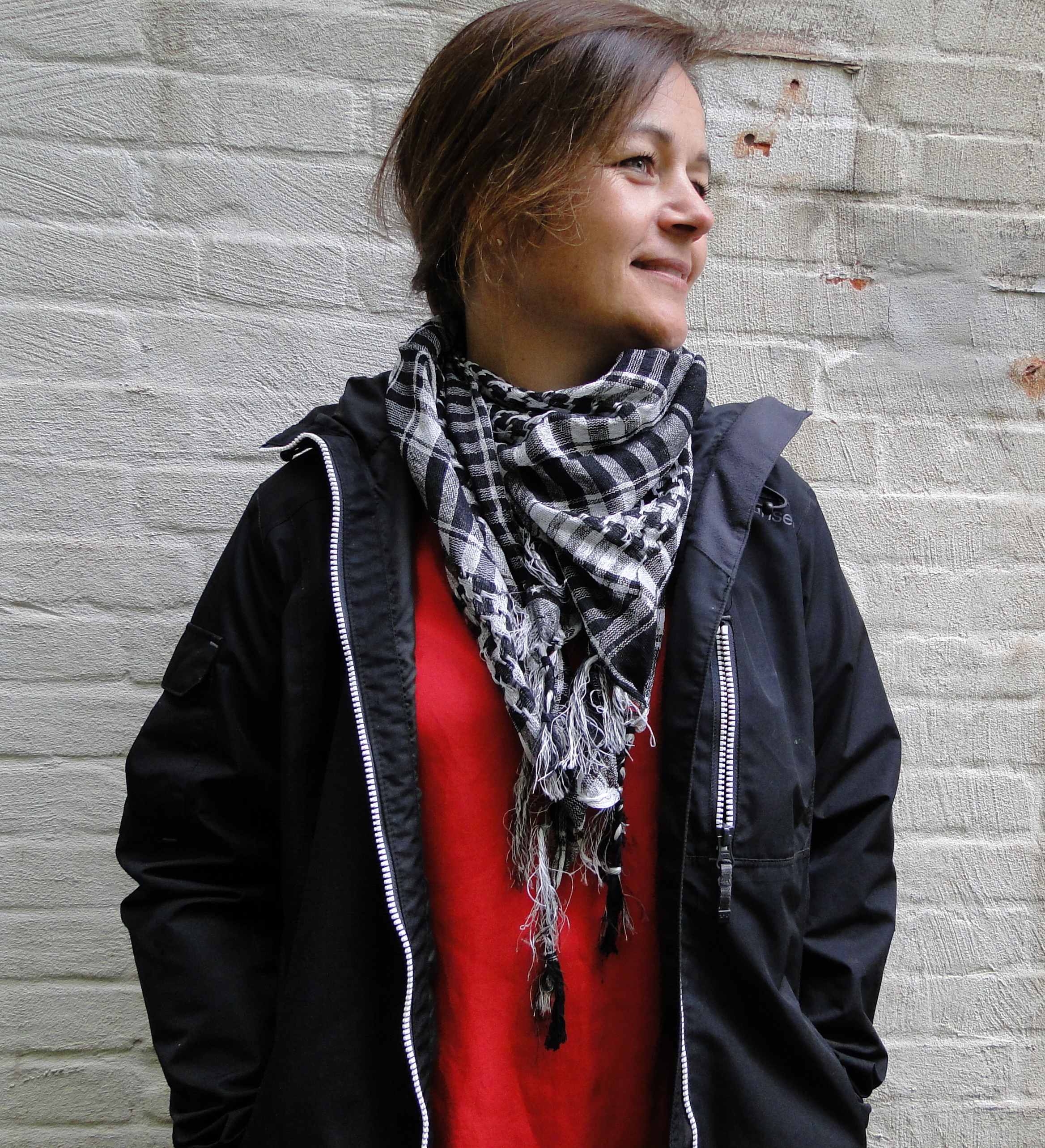 Then, return to your walk down the street, with or without a checkered scarf. Now aware of the grey tones and nuances of the story underlying the black and white checks.